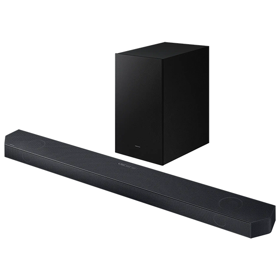توفّر ميزة Q-Symphony صوتاً محسّناً عبر جميع القنوات من خلال مكبرات الصوت الأمامية والجانبية والعلوية الضخمة في التلفزيون وجهاز الصوت على حدّ سواء، للحصول على تجربة صوتية لا يُعلى عليها.