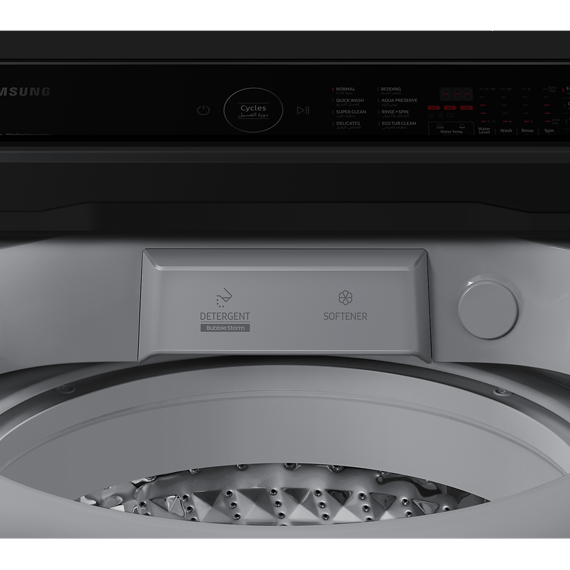 غسالة التحميل العلوي، 15 كغ بتكنولوجيا ™EcoBubbleتساعد تكنولوجيا ™Ecobubble مع تكنولوجيا العاكس الرقمي (DIT) في تنظيف ملابسكِ بمعدل استهلاك أقل للطاقة بنسبة تصل إلى 60% واستهلاك أقل للماء بنسبة تصل إلى 11%. تساعد تكنولوجيا BubbleStorm™‎ المنظف على التغلغل عبر أنسجة ، مثلما تتيح عناية أفضل...عرض أكثر
